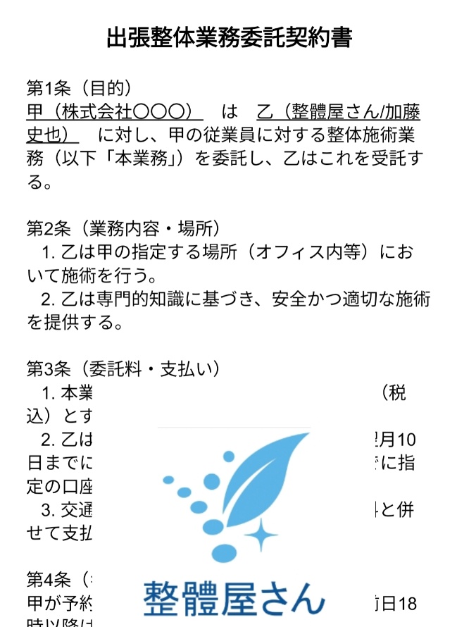 出張整体サービスの導入が決定したら“業務委託契約書”にご署名して頂きます。