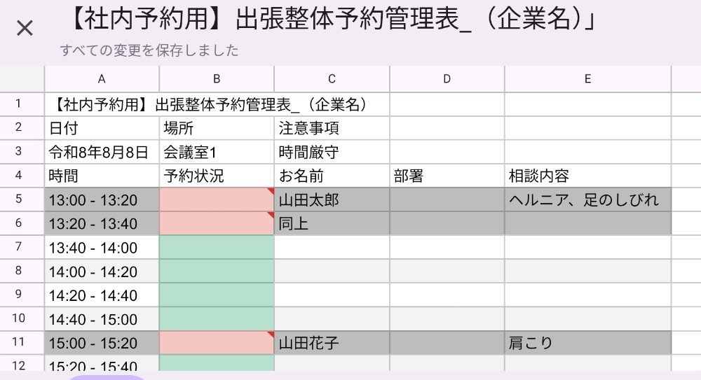 弊社提供の「専用予約管理スプレッドシート」を使い、すぐに運用をスタートできます。